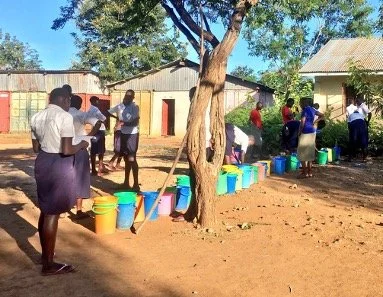 KGS Students Waiting in Water Bucket Line